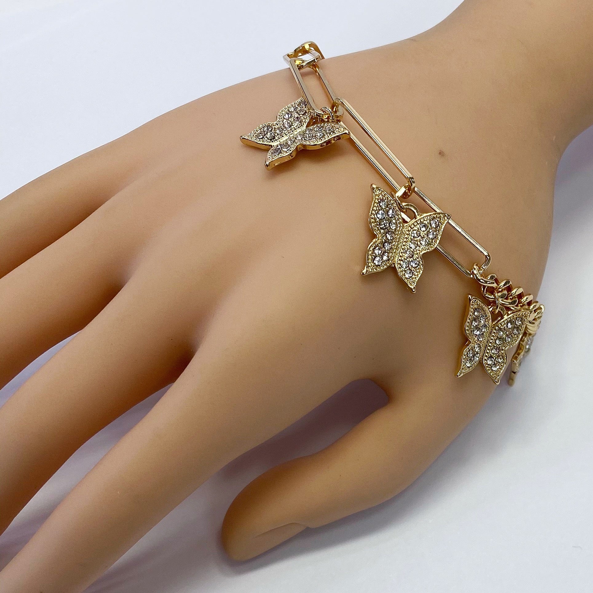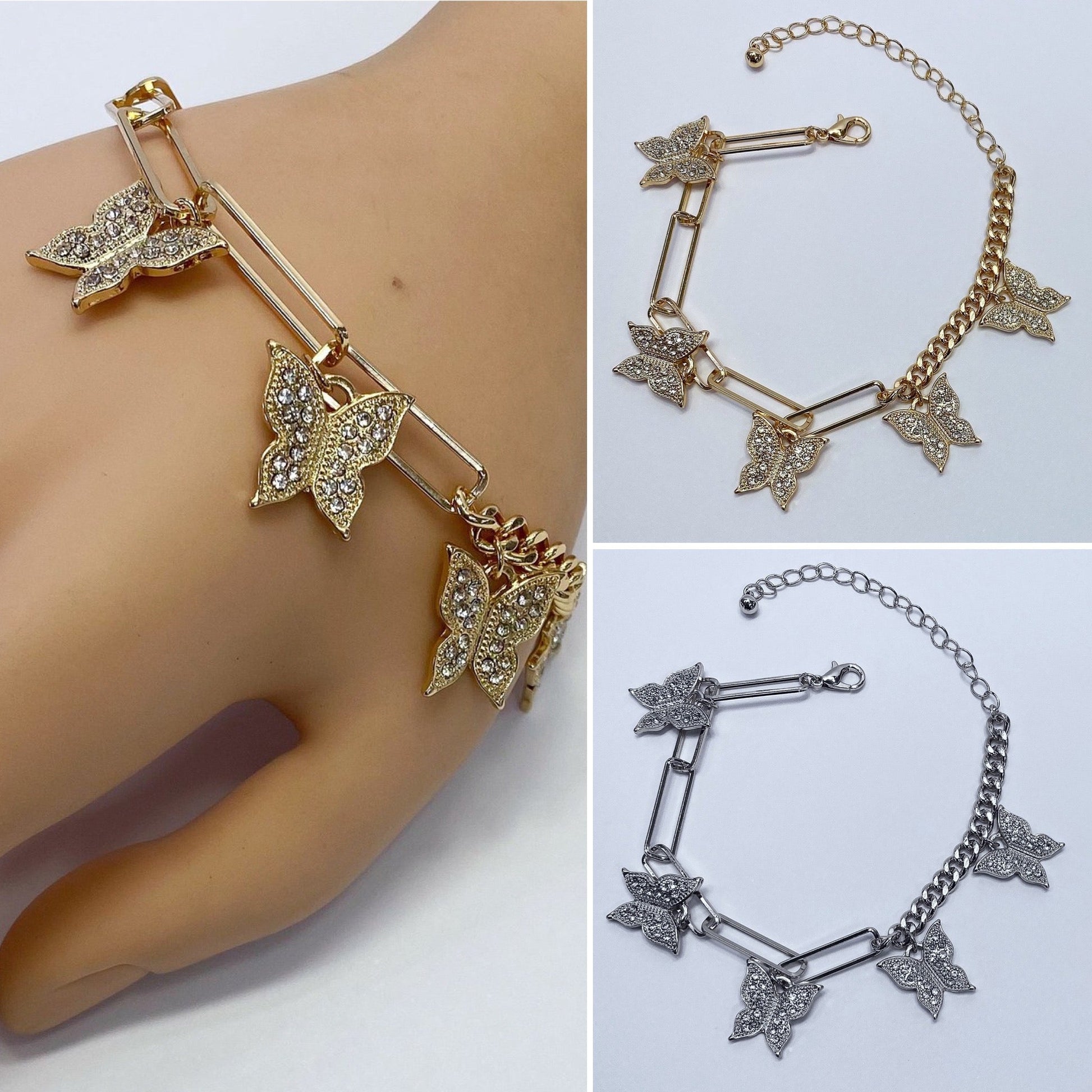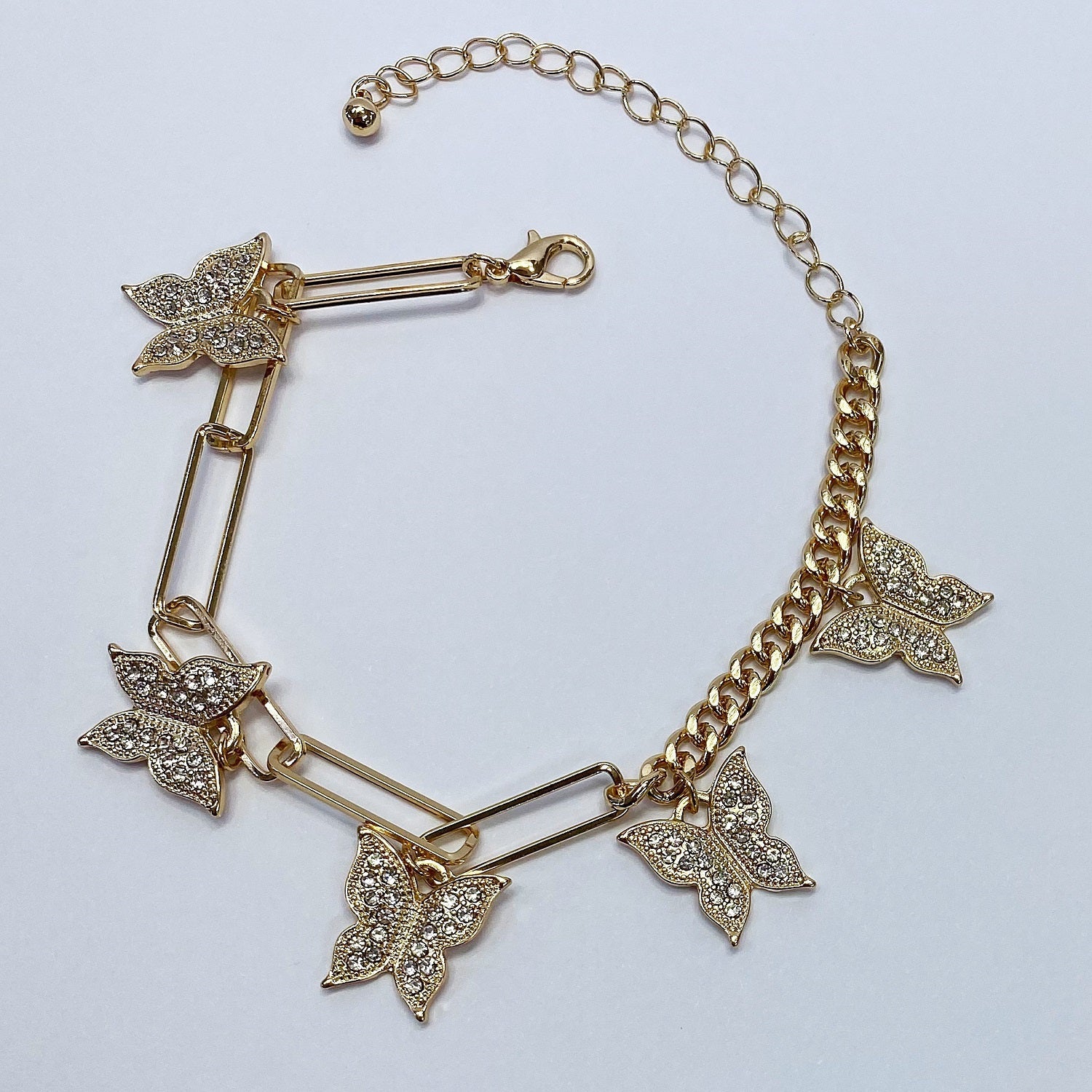 Chain with Rhinestones Decorated Butterfly Shape Charms Bracelet