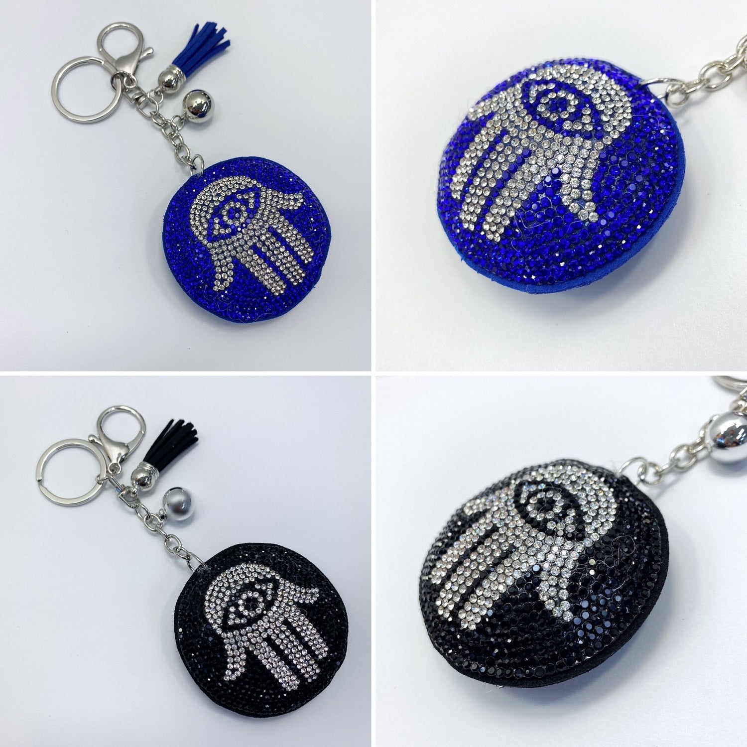 Rhinestones Decorated Hamsa Evil Eye Design Key Chain