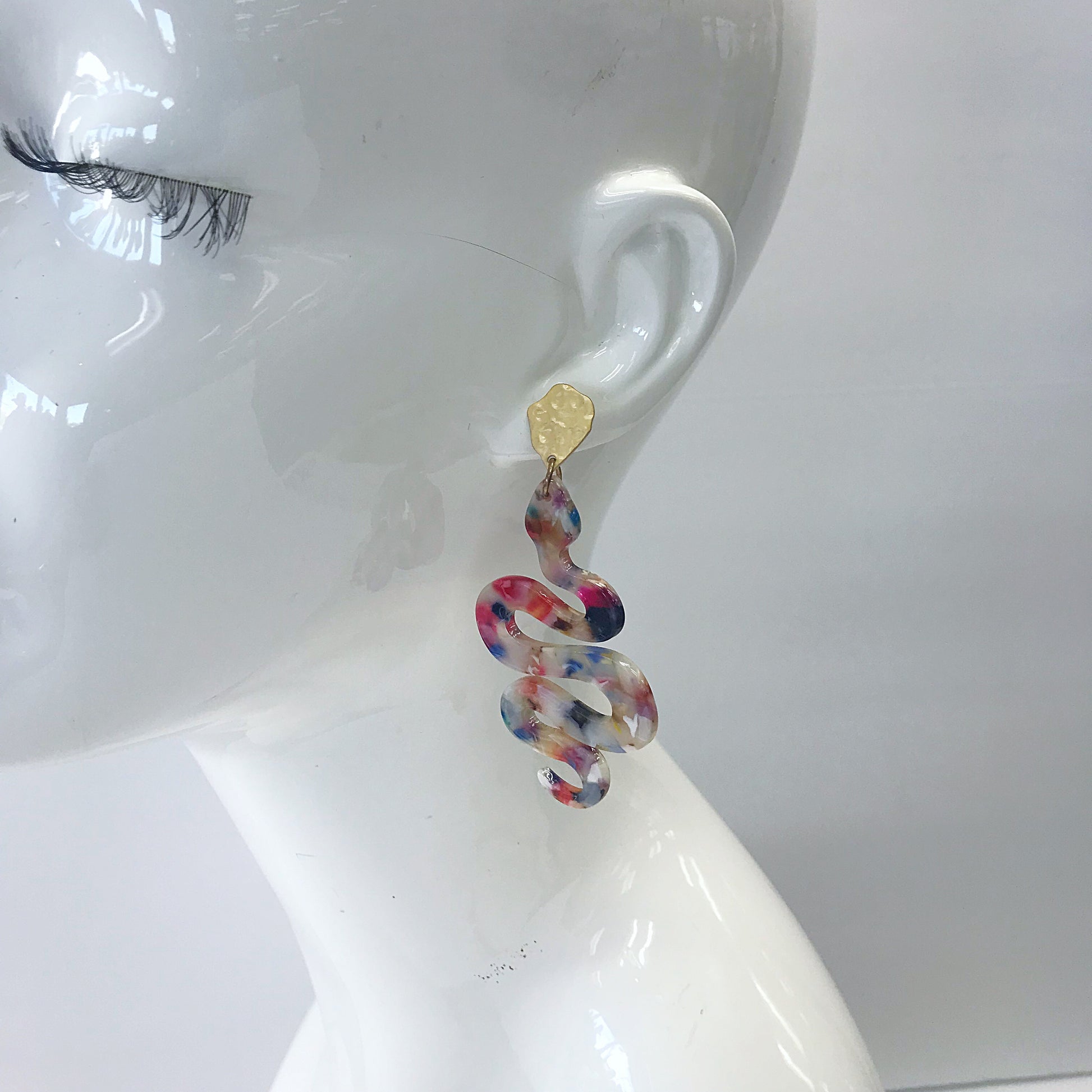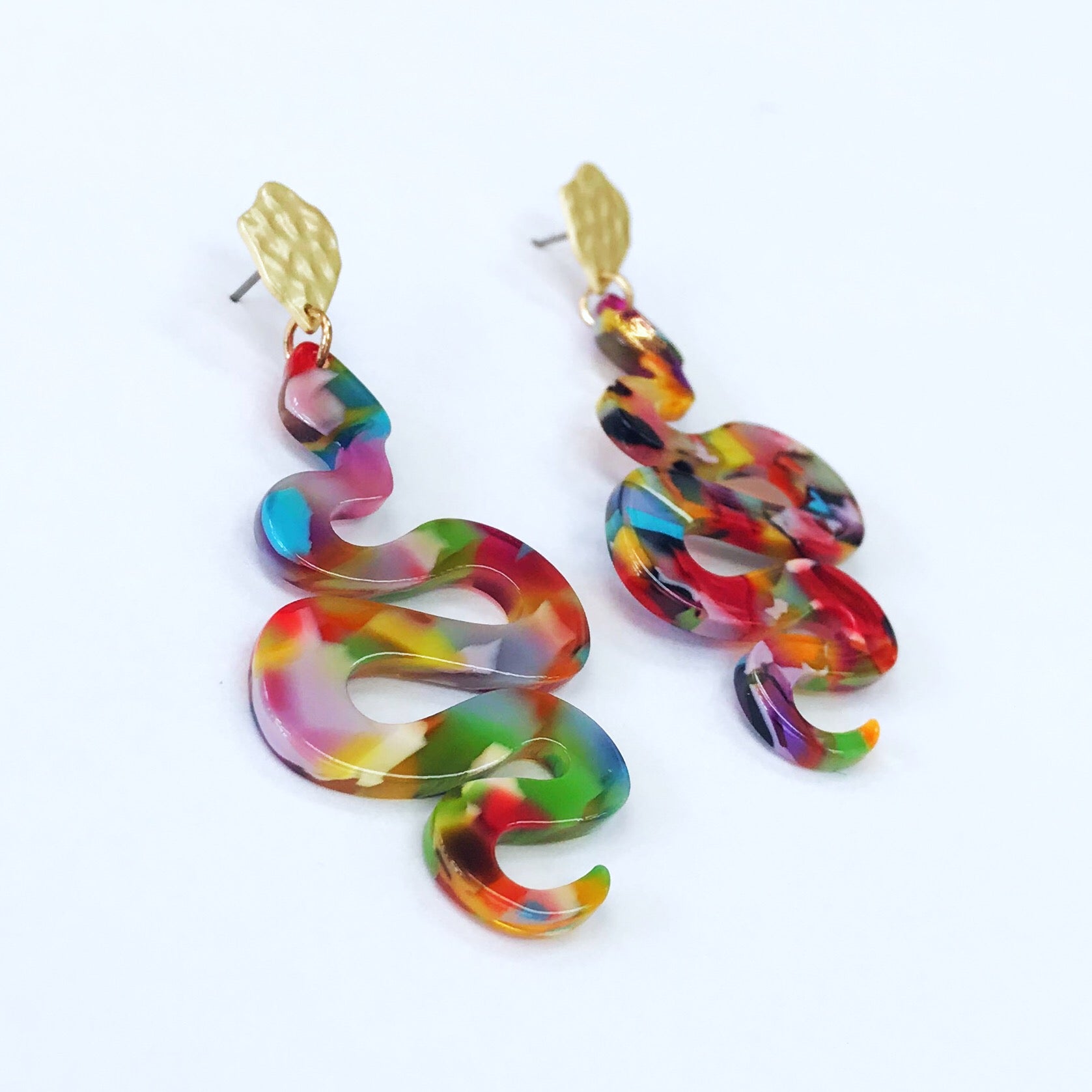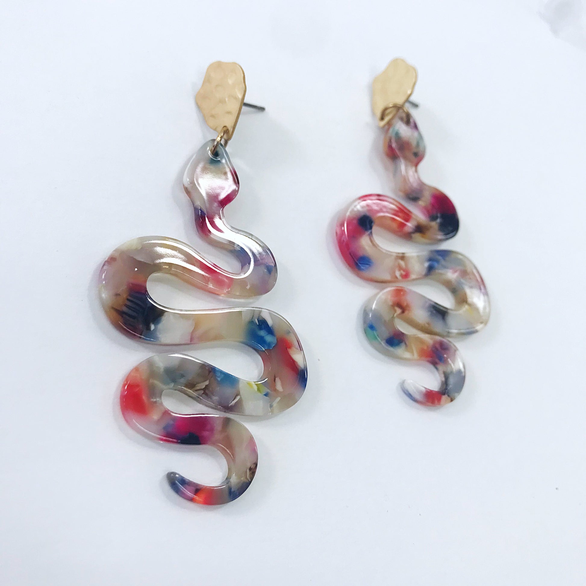 Multicolor Drop Dangle Snake Shape Acrylic Earrings