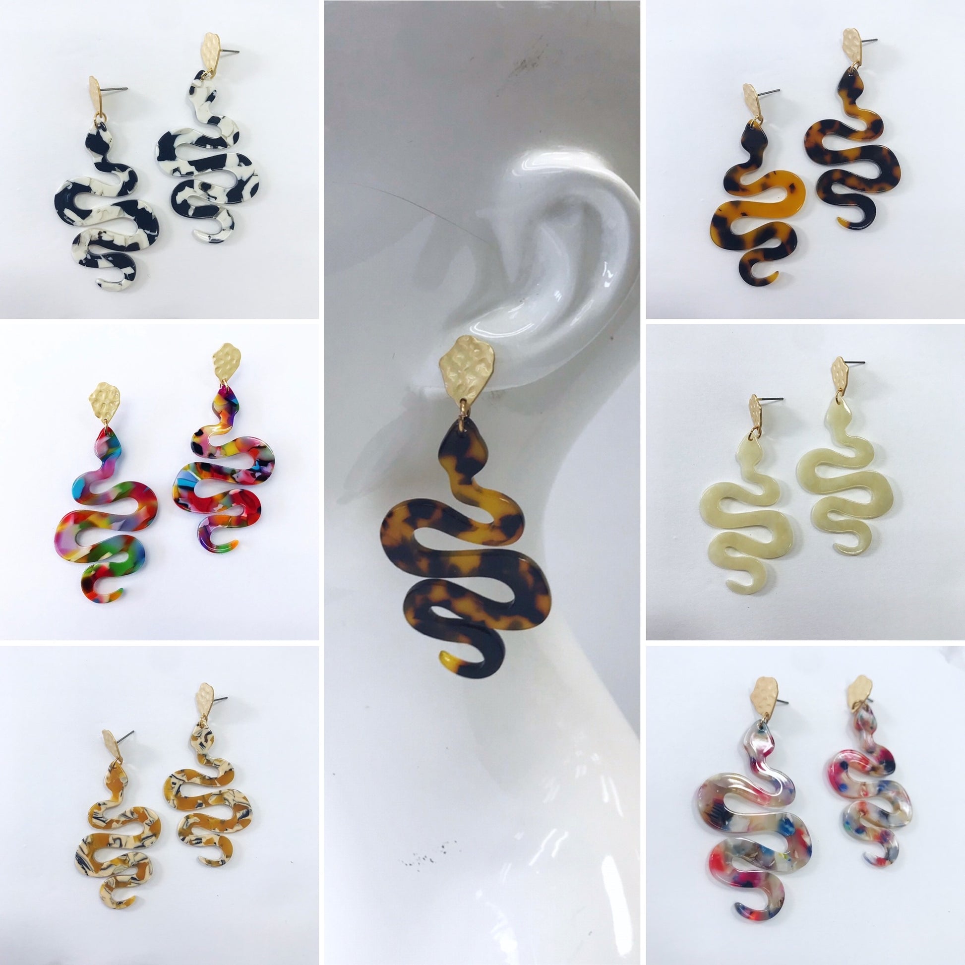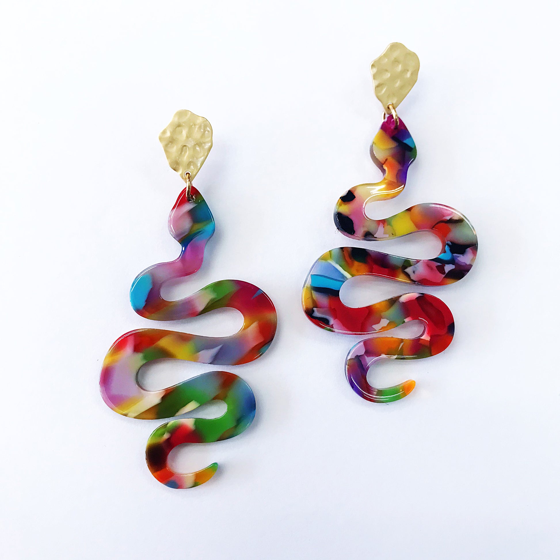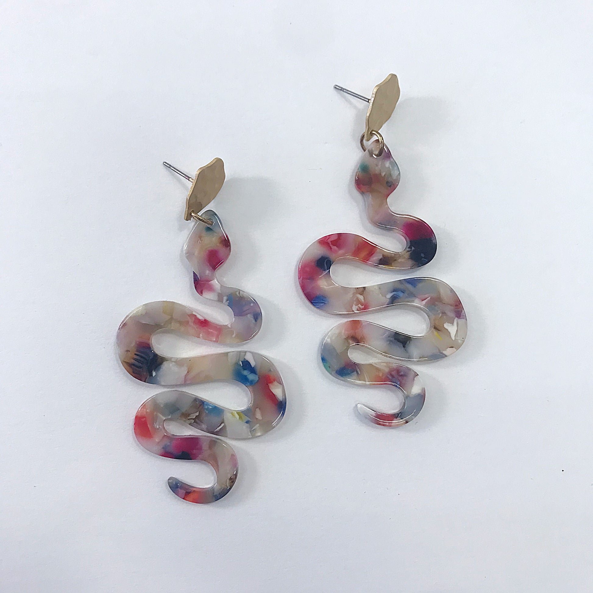 Multicolor Drop Dangle Snake Shape Acrylic Earrings