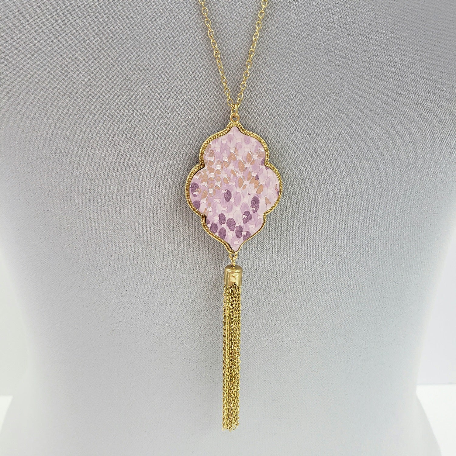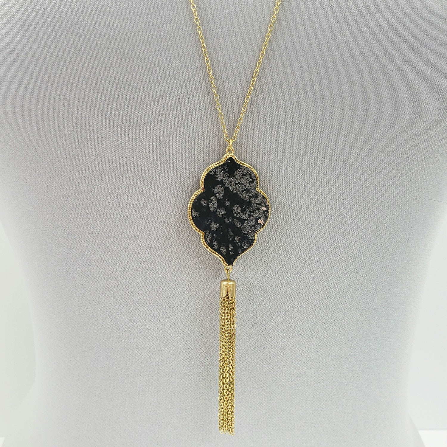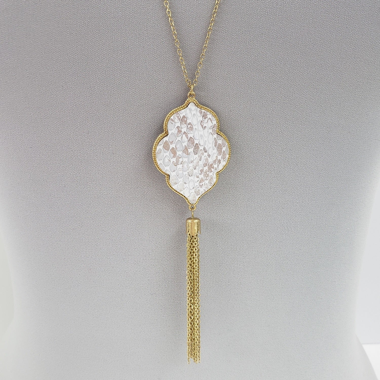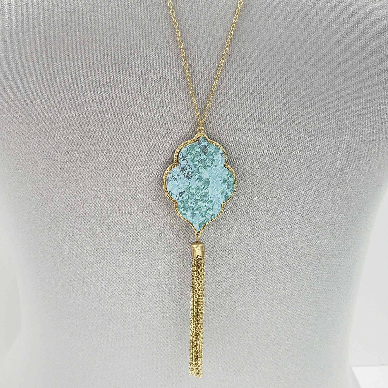 Snake Skin Design Clover Shape Pendant with Chain Tassel Necklaces
