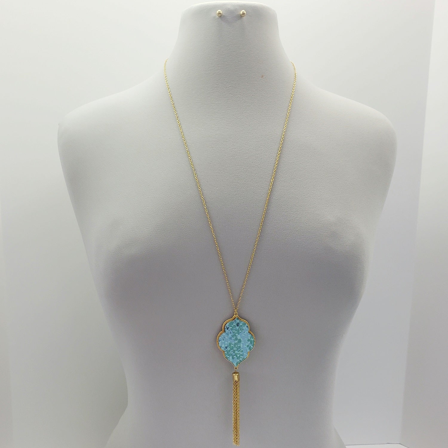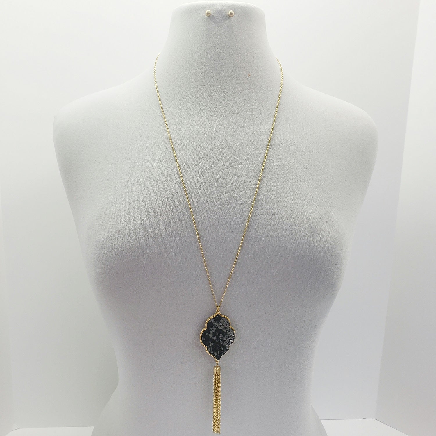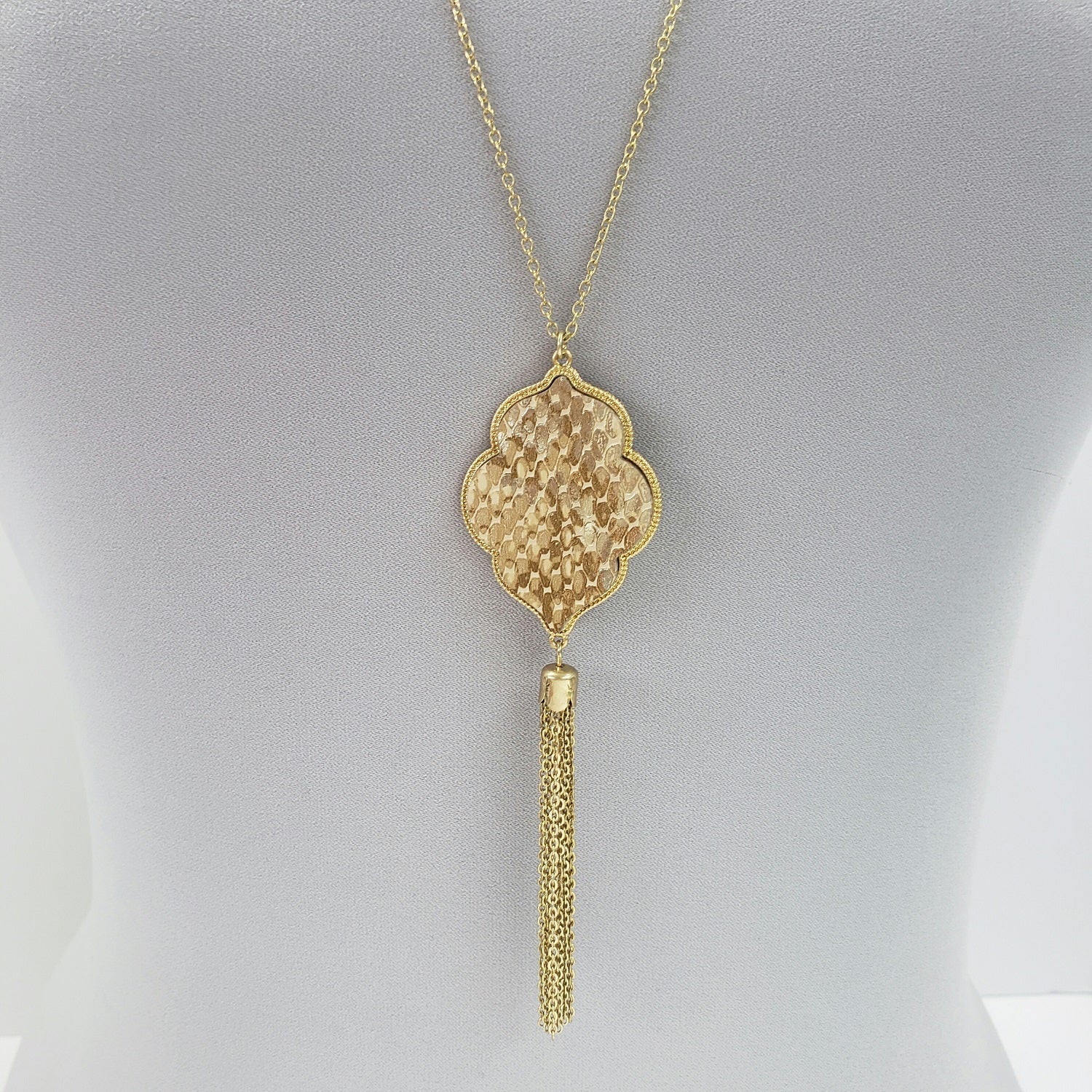Snake Skin Design Clover Shape Pendant with Chain Tassel Necklaces