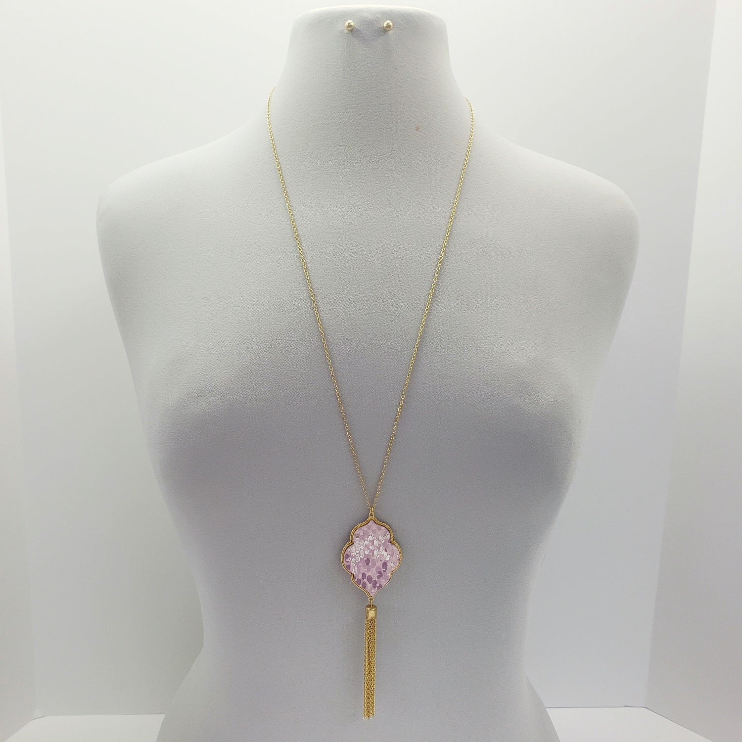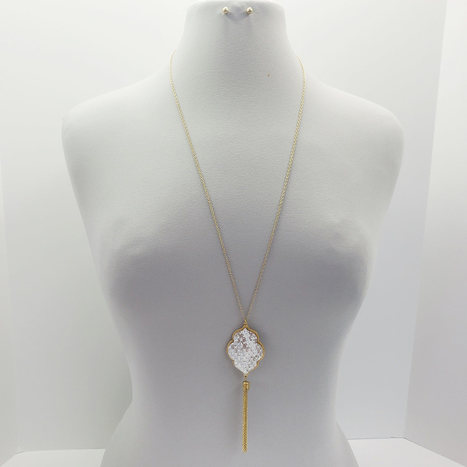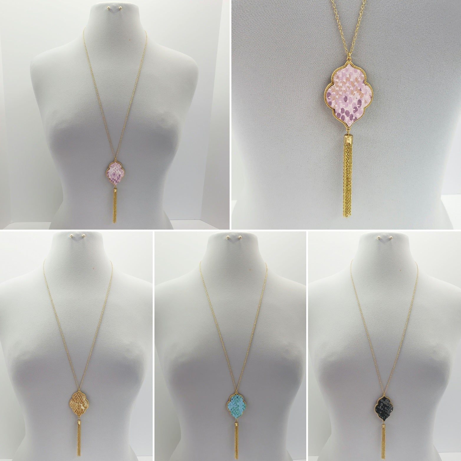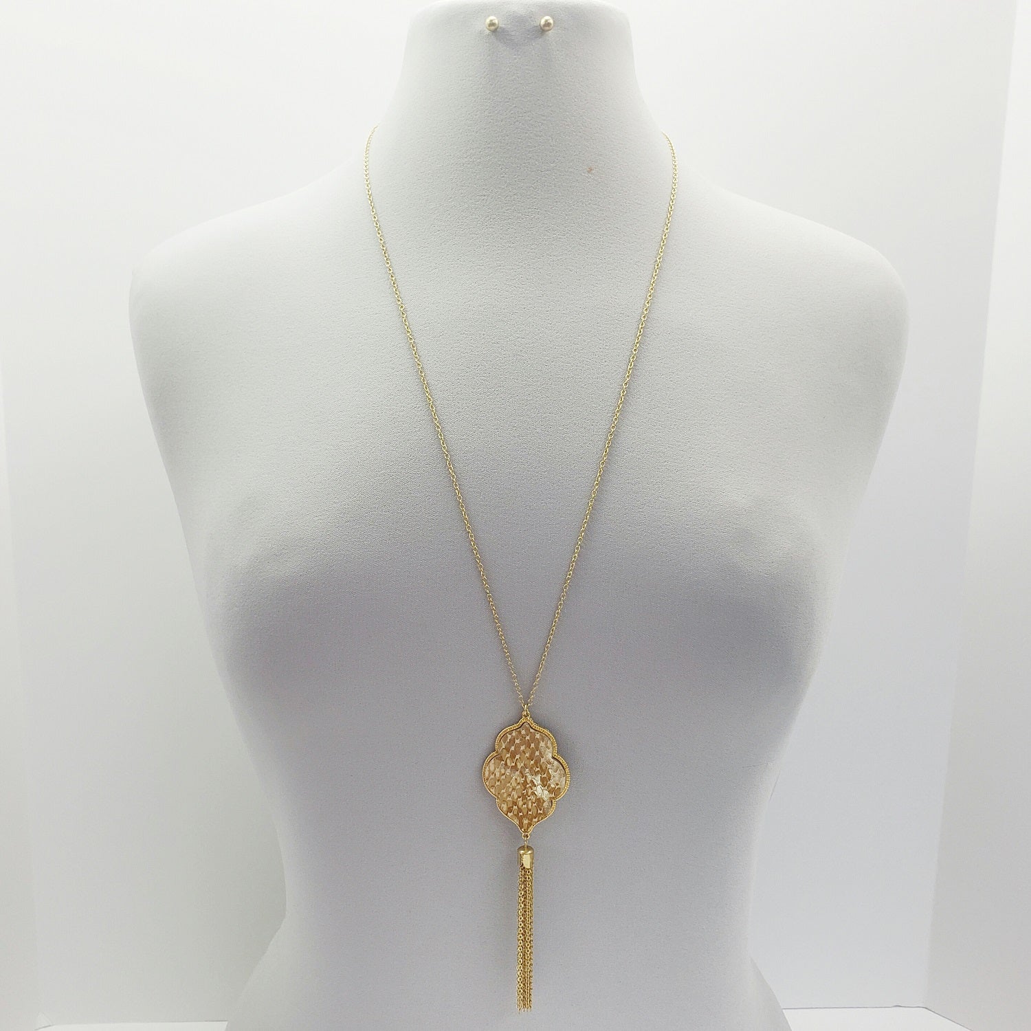 Snake Skin Design Clover Shape Pendant with Chain Tassel Necklaces